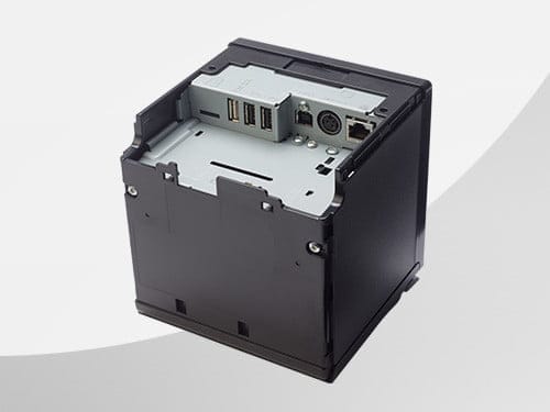 Schlichtes, kompaktes Design Der TM-m30II-H hat ein schlichtes, quadratisches Design mit kleiner Standfläche. Dadurch fügt er sich unauffällig in die meisten Umgebungen ein. Er ist in Schwarz oder Weiß erhältlich.