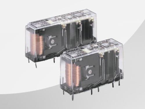 Die schmalen Relais der Serie G7SA mit zwangsgeführten Kontakten stehen als vier- oder sechspolige Ausführungen mit verschiedenen Kontaktkombinationen und verstärkter Isolierung zur Verfügung. Die Anordnung der Leiterplattenanschlüsse erfolgte in Hinblick auf ein möglichst einfaches Leiterplatten-Layout. Diese Relais können direkt eingelötet oder unter Verwendung der Sockel P7SA benutzt werden.