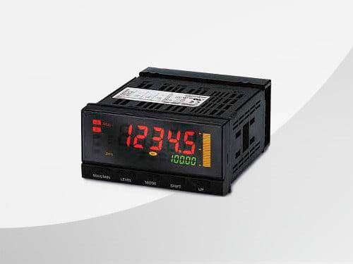 Diese Anzeigen mit 2 x Analogeingängen besitzen eine gut ablesbare, anwenderfreundliche Farbumschlagsanzeige und sind in einem Gehäuse mit spritzwassergeschütztem Frontpaneel (gemäß IP66) untergebracht. Die Anzeigen der Serie K3HB besitzen eine hohe Abtastrate (50 Messungen pro Sekunde).